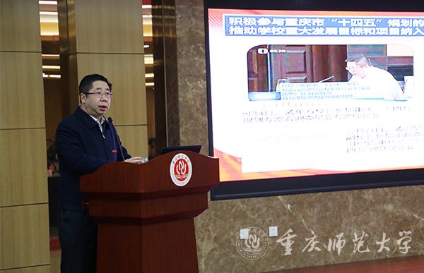 会上,孟东方校长向大家介绍了学校发展概况。他谈到,2020年,学校着眼发展全局,提高政治站位,加强党建与思政工作,推进重点工作;抓实抓好本科教育,提升人才培养质量,聚焦学科建设重点,凸显综合办学实力;加强培引力度和创新科研机制,进一步促进人才强校和科研兴校,加强文化建设,培育文化特质;拓宽拓深工作领域,为学校发展增添动力;统筹协调发展,改善学习工作环境,为建设发展提供有力保障;完善内部治理,调动重师人共建共享的积极性。