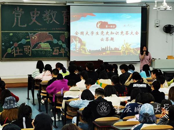 将党史学习教育与思政工作紧密结合,有机融入思政课程和课程思政,运用“沉浸式教学”“原创话剧展演”等多种方式,再现革命历史故事,演绎百年奋斗历程。倾情推出了“革命文物里的党史、歌声里的党史、小说里的党史”等系列主题活动,讲好革命文物里的重庆党史,讲述经典红色歌曲背后的故事,品读文学经典中的党史。以深入挖掘学校红色校史为契机,系统梳理并宣讲萧楚女、张闻天等革命志士到学校开展革命活动的故事。学校与重庆红岩联线文化发展管理中心合作共建红岩精神教育实践基地,发挥优势互补的强大育人合力。