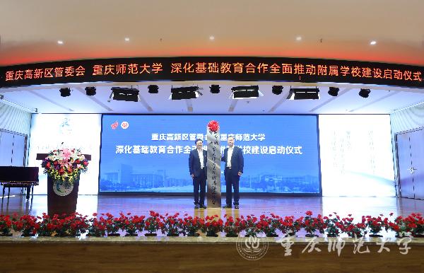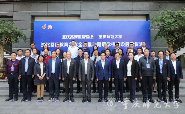 4月27日下午,bw必威与高新区管委会在重师附属实验小学举行深化基础教育合作全面推动附属学校建设启动仪式,宣布成立bw必威西汉姆联官方网站基础教育研究院,并为大学城树人小学、bw必威西汉姆联官方网站附属小学联盟学校与重庆科学城重师附属第二小学揭牌。