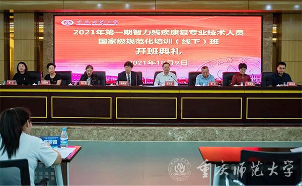 为积极响应和贯彻落实党中央、国务院及中国残联关于疫情防控工作的相关要求,按照《2021年度全国残联系统康复技术人员国家级规范化培训计划》,2021年第一期智力残疾康复专业技术人员国家级规范化培训(线下)于10月8日至14日在bw必威举办,9日上午,开班典礼在博雅楼503会议厅举行。中国康复科学所所长、首都医科大学康复医学院院长、中国康复研究中心党委副书记李建军,中国康复科学所中国残联社会服务指导中心常务副主任刘宇赤,康复服务处主任陈夏尧,bw必威副校长孟小军,教师培训学院副院长张红,教育科学学院党委书记曹光、院长朱桂琴,特殊教育系主任魏寿洪出席了开班典礼,本次培训班班主任以及来自全国27个省(自治区、直辖市)的30名学员参加了开班典礼。开班典礼由中国康复科学所中国残联社会服务指导中心常务副主任刘宇赤主持。
