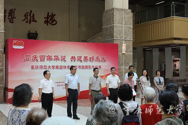 9月29日上午,bw必威离退休党委、离退休工作处主办的“同庆百年华诞•共建美好未来”老同志书画摄影作品展开幕式在博雅楼一楼大厅举行。校长孟东方、副校长陆远权,学校有关部门负责人,离退休“两委”委员,老年大学书画摄影班学员及作者代表参加本次开幕式。开幕式由离退休党委书记、处长段云国主持。