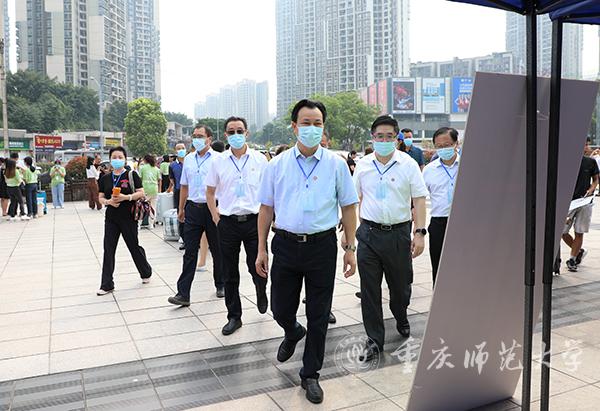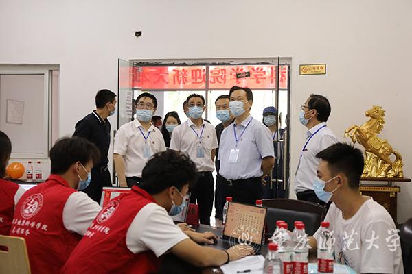 随后,校领导一行先后走访了物理与电子工程学院、外国语学院、历史与社会学院、生命科学学院、美术学院等十六个学院迎新点,询问各学院招生人数、新生报到比例等工作进展情况。今年学院迎新工作各具特色,外国语学院为新生送上特色卡套,文学院为新生准备了手写信、折扇、书籍等抽奖礼品,计算机与信息科学学院录制每位新生对未来大学生活期望寄语的视频,体育与健康科学学院赠送新生“防疫大礼包”等。不少学院还开设了新生签名墙、拍照墙,新生们可在此拍照留念,成为了迎新工作中的一道风景线。在党员服务点,曾礼书记勉励学生党员们发扬“全心全意为人民服务”精神,让新生感受到学生党员群体的先进性,带动广大同学共同进步。