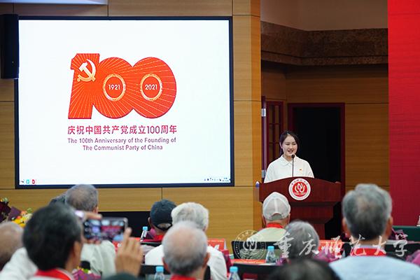 教师党员代表、化学学院党委副书记卢洪英同志发言时表示,将以老党员的优秀事迹为榜样,以履行党员职责为本分,以发展重师为担当,模范带头、教书育人,为学校新的明天砥砺前行,接续奋斗。学生党员代表、历史与社会学院社会工作专业研究生赵茜同志表示,作为一名年轻党员,将追随优秀老党员的足迹,将所学专业知识回馈社会,将助人工作作为自己愿意为之奋斗一生的事业,将奉献社会作为不懈追求的终极目标。