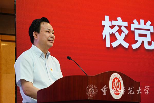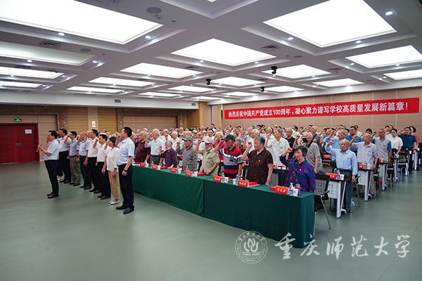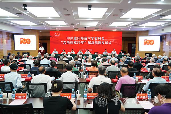 党委书记曾礼同志代表学校党委,向所有荣获“光荣在党50年”纪念章的老党员表示热烈祝贺和崇高敬意,向老同志们为党和国家的事业、学校的建设发展所做的不懈努力以及重要贡献表示衷心感谢和诚挚问候。他指出,作为庆祝中国共产党成立100周年活动的重要组成部分,党中央决定为光荣在党50年以上的老党员首次颁发纪念章,充分体现了以习近平同志为核心的党中央对老党员的政治关怀和尊崇厚待,显示出党和人民对老党员历史贡献的高度评价和充分肯定。在党的坚强领导下,学校加强内涵建设,塑造核心竞争力,知名度、美誉度和影响力不断提升。这些成绩的取得是历届党政领导班子,一代代重师人、老党员艰苦奋斗的结果。尊重老党员就是尊重党的历史,珍视老党员就是珍视党的财富。曾礼书记号召年轻党员同志和新一代重师人,传承精神谱系,赓续光荣传统,接过时代接力棒,为加快建设高水平综合性师范大学而努力奋斗,奋力谱写新时代发展新篇章。