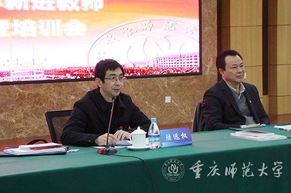 孟东方校长以《融入重师大家庭共促未来大发展》为题给新进教师作了专题培训:一是学校发展情况,讲述了学校悠久的办学历史,要求大家要深刻认识重师的历史、文化和宝贵的精神财富,共建“各美其美、美人之美、美美与共、天下大同”的和谐自信校园文化;二是详细介绍“1+4”五年行动计划的主要内容和特征以及进展评估情况,期望大家积极参与作出自己的贡献,并围绕六“维”,达成四“度”;三是提出殷切希望,希望所有新进教师认真学习掌握好校情校规校纪,尽早融入重师大家庭,迈好在重师的每一步,强化主人翁意识,认同重师为共同的家园、共同的名字是重师人、共同的情结是重师情结,锻炼好本领,把自身的事业理想融入到学校发展中,在成就学校的同时也成就自己,共同建设好我们的“重师家”。