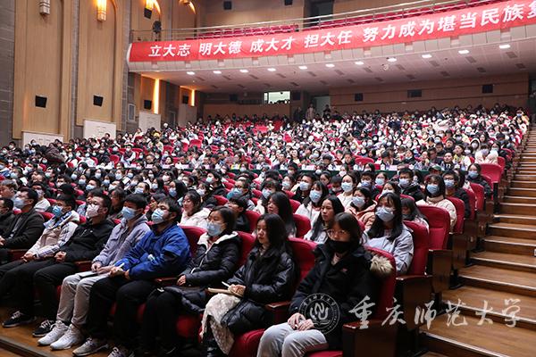 陈志军副书记作总结讲话。他在对本届报告会的圆满举办表示祝贺后,对报告团全体成员提出希望:希望他们戒骄戒躁,继续努力,让自己的青春在人生更高的舞台上焕发更绚丽的光彩;希望他们继续播散“名生”火种,以领雁的星星之火,点燃群英荟萃之势。同时,他对2021级新同学提出三点期望:一是要坚定理想信念;二是要把握学习精髓;三是要争做重师“名生”的传承者。他还向参会的职能部门及教师提出明确要求:一是要求各职能部门切实以学生发展为中心,调动一切因素促进学生全面发展;二是要求各学院抓实学生成长过程,为学生发展成才提供优越的条件和环境;三是要求辅导员班主任强化主责主业,提升育人本领。
