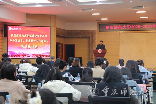 学校思想政治理论课建设领导小组办公室成员兼党委教师工作部部长陈进东在总结讲话中向获奖师生表示衷心的祝贺,并强调了思政课程以及实践教学在新时代背景下的重要意义。陈部长强调,高校思想政治理论课是落实立德树人根本任务的关键课程,实践教学是思想政治理论课课堂教学的拓展与延伸、是促进大学生实践成长的重要途径。对此,他提出三点建议:一是要着力推进重点马克思主义学院建设,抓住机遇,为思想政治理论课建设夯实平台基础;二是要切实推进立德树人根本任务,落实落细,将思想政治理论课的育人功能落到实处;三是要坚持理论教育与实践教育相结合,知行合一,为大学生的实践成长搭建桥梁载体。