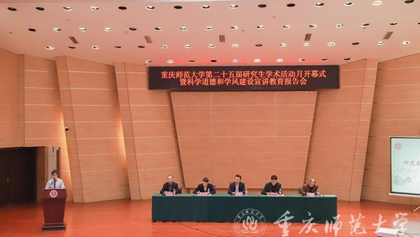 研究生代表、来自文学院2019级的硕士研究生张玉带领全体研究生进行学术道德宣誓。她在发言中将学术比作知行合一的修行,认为这是一件极有品格的事情,而做好学术是要从实践中来,“学术活动月”正是大家活动活动筋骨、舒展舒展手脚的时候。