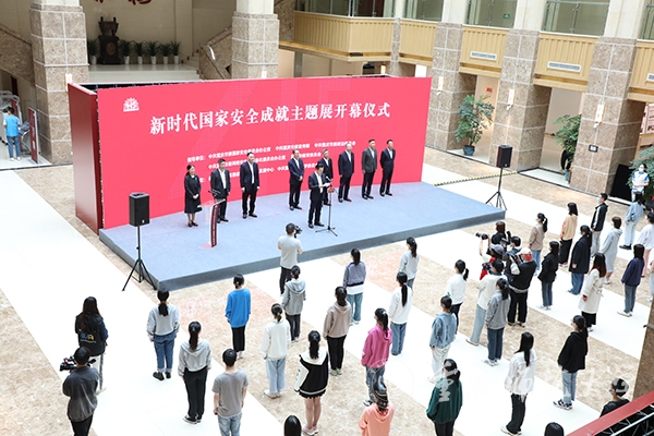 随后,市委常委、政法委书记、国安办主任刘强宣布新时代国家安全成就主题展开幕,并同师生代表一起参观了展览。