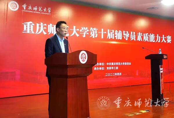 校党委副书记陈志军出席并全程观摩比赛。重庆市教委宣教处副处长尤春艳,重庆市教委宣教处干部姜瑞民,四川外国语大学党委学工部部长、学生处处长崔光军,重庆理工大学党委学工部部长、学生处处长赵毅,学校党委常委、组织部部长张明志,校党委宣传部部长党亚莲,学校招生就业处处长冉久飞,校团委书记高菁励担任比赛评委。