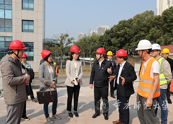 调研组首先来到应用数学中心大楼修建现场进行实地考察,了解工程施工进度。孟东方校长就工程项目前期准备、修建情况、进度安排等向调研组做了介绍。