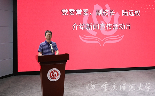 开幕式伊始,党委常委、副校长陆远权对新闻宣传活动月有关情况进行介绍。他指出,自2001年开始,每年举办一次“新闻宣传活动月”,迄今已有22年。22年来,在一代又一代重师新闻人的坚守与积累、历练与创造中,“新闻宣传活动月”已成长为具有一定影响力的校园文化活动品牌,展示着新闻宣传强大的育人功效。本届活动月做到了传统项目与创新形式相结合,在接下来的各项活动中要进一步发挥青年人的主观能动性,激发大学生的责任意识,形成校内各单位宣传工作合力,进一步做好新闻宣传工作。
