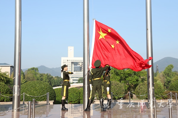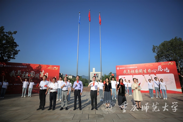 “我与共和国同生日”主题教育活动在庄严的升旗仪式中拉开序幕。党委副书记陈志军在致辞中勉励重师学子要把习近平总书记的谆谆教诲,领会到不断坚定的理想信念中,融入到校园的朗朗读书声中,践行到知行合一的回馈人民中,努力成长为堪当民族复兴大任的时代新人;勉励广大教师要始终以立德树人为根本,用对教育事业的无限忠诚,对青年学子的无比热爱,引领青年大学生成长成才。与共和国同生日的学生代表、地理与旅游学院2020级艺术教育专业学生刘意涵在发言中表示,冉冉升起的五星红旗让他更加深刻理解到信念的颜色,激励他在今后的人生旅程中坚定理想,勇于担当。教师代表,国家万人计划创新领军人才、生命科学学院邱宝利教授谈到,他在过去的三十年中,见证了国家对教育和科技的巨大投入、对各行各业人才的渴望与重视,表示将秉承立德树人的育人理念,争做“四有”好老师。最后,参加活动的全体师生以歌声深情告白祖国,活动在《我和我的祖国》《歌唱祖国》的歌声中圆满结束。