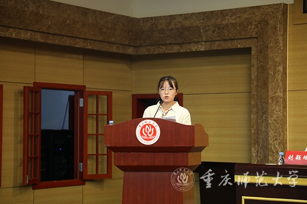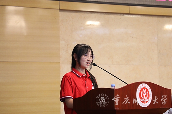 随后,“地方优师专项计划”师范生代表马克思主义学院思想政治(师范)专业2022级黄若昕同学和生命科学学院生物科学(师范)专业2022级周倩同学发言。黄若昕来自于云阳县,她谈到,乡村教师梦起源于哥哥的“七彩假期”志愿支教活动,亲眼看到了乡村教育的落后与教师资源的匮乏。她表示,要努力学习本领,提升师范生技能,争做一名“四有”好老师。周倩来自于石柱县的一个偏僻小山村,她分享了自己立志从教的“筑梦、追梦、圆梦”心路历程,报考“优师计划”就是为了毕业后回到家乡,让大山里的孩子也能遇到优秀的好老师。