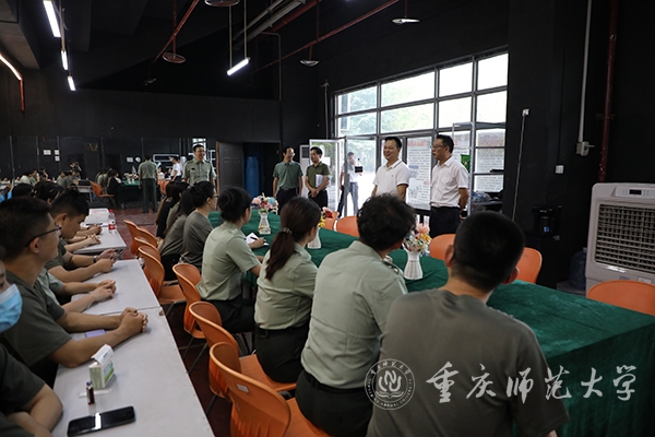 曾书记在听取了对2022级新生军训工作开展情况的汇报后,前往军训操场视察军训成果,并对2022级新生军训情况表示充分肯定。随后,在军训现场亲切慰问全体军训指导员。曾书记首先代表学校和军训师,向全体军训指导员坚守军训一线,不怕苦不怕累的工作精神表示高度赞扬。针对军训指导员的下一步工作提出殷切期望:一是继续发挥吃苦耐劳的奋斗精神,站好军训最后一班岗;二是充分彰显学生工作深入学生、深入一线的工作作风,了解、掌握学生的思想动态,为他们排忧解难,做学生的知心朋友;三是勇担立德树人育人使命,加强新生价值引领与思想教育,做学生的人生导师。