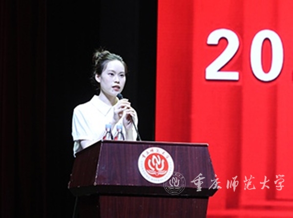 生命科学学院2019级生物科学(师范)专业李进平同学作为高年级学生代表发言。她分享了自己在重师从懵懂茫然到能独立完成实验设计的成长经历,激励同学们坚定初心,行而不辍,走好这一代人的长征路。