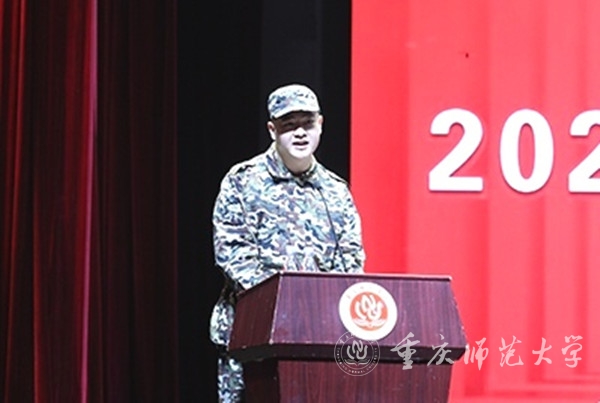 体育与健康科学学院运动训练专业2022级王恺群同学代表全体参训学员表决心。他表示,军训期间听从指挥、遵守纪律、认真训练、不怕辛苦、锻炼意志,增强体魄,以优异的成绩完成开学第一课。陆军工程大学通信士官学校牛子月作为承训部队教官代表庄严承诺:“必将在军训师的正确领导下,严守法规纪律,科学组织训练,严格管理,抓好队伍作风建设,高标准完成军训任务。”
