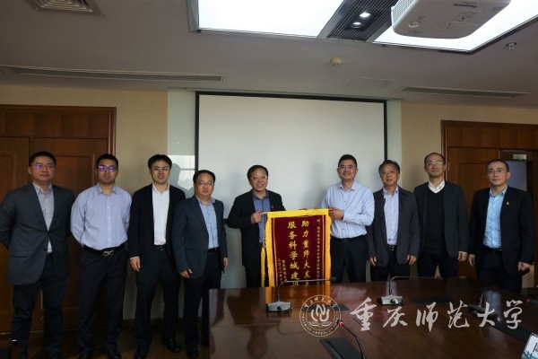副校长孟小军一行来到国家电网重庆市电力公司与其副总经理朱晓岭进行了亲切会谈,并代表学校将一面写有“助力重师大发展,服务科学城建设”的锦旗和一封满怀谢意的感谢信赠与国家电网重庆市电力公司。