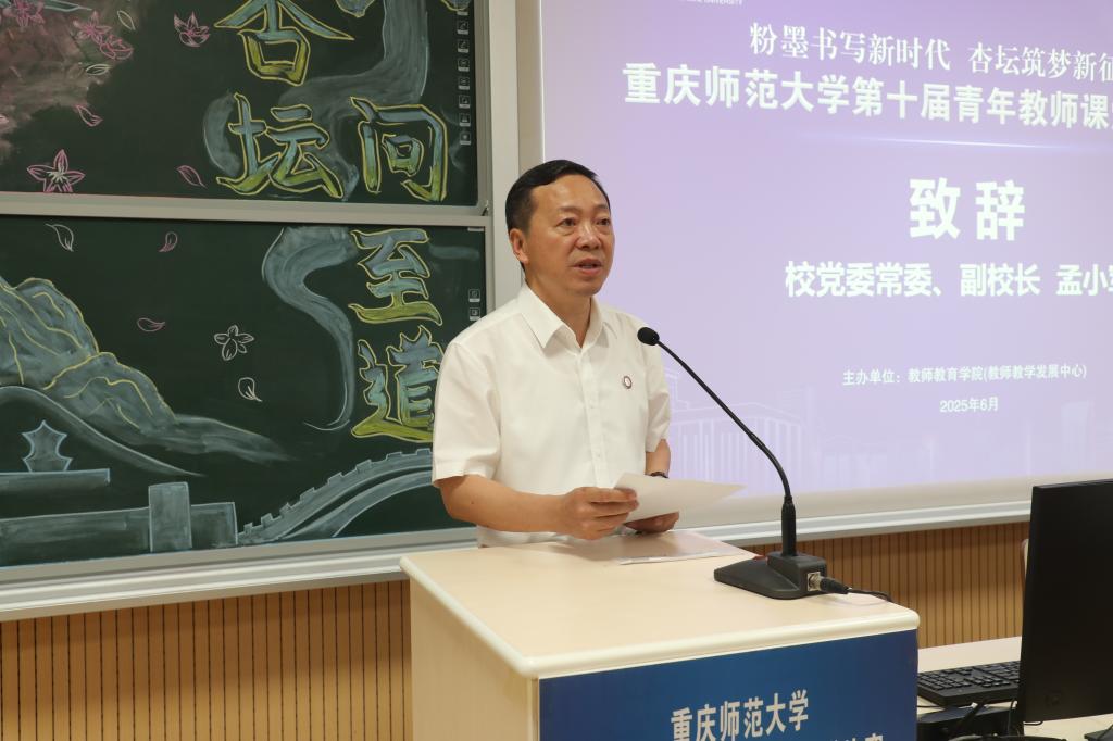 孟小军在致辞中指出,青年教师作为学校教学主力军,肩负着培养新时代优秀人才的重任。学校举办青年教师课堂教学比赛,旨在营造重视教学、钻研教学的良好氛围,激励青年教师不断追求卓越,提高教学质量。课堂教学是立德树人的主阵地,青年教师要始终以学生为中心,深耕教学艺术,推动课堂革命。作为学校传承多年的品牌活动,青年教师课堂教学比赛已成为锤炼师资队伍、促进教学交流的重要平台,为学校培养了一大批优秀教师和业务骨干。他强调,在人工智能时代,教师要提升数字化教学能力,积极践行“以生命影响生命、以智慧启迪智慧”的教育真谛。他勉励青年教师要弘扬教育家精神,夯实教学根基,努力成为“经师”与“人师”相统一的“大先生”。
