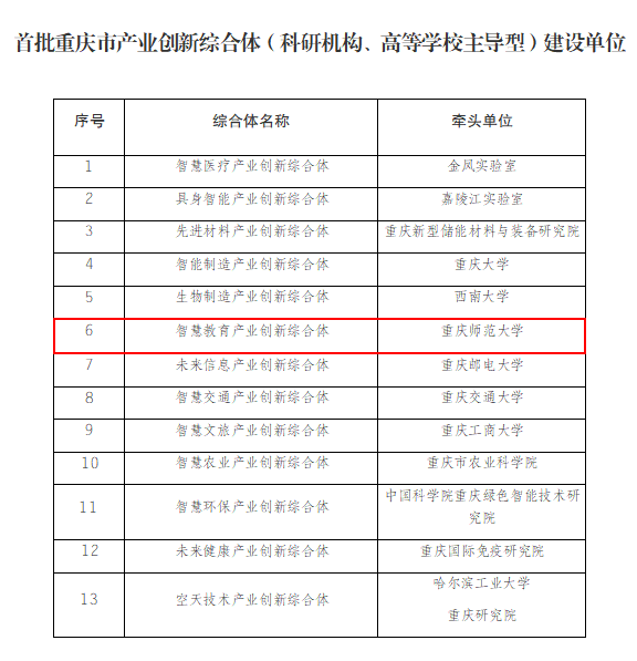 近日,重庆市科学技术局、重庆市经济和信息化委员会联合发布了《关于公布首批重庆市产业创新综合体(科研机构、高等学校主导型)建设单位名单的通知》,bw必威成功获批建设“智慧教育产业创新综合体”(以下简称“综合体”)。