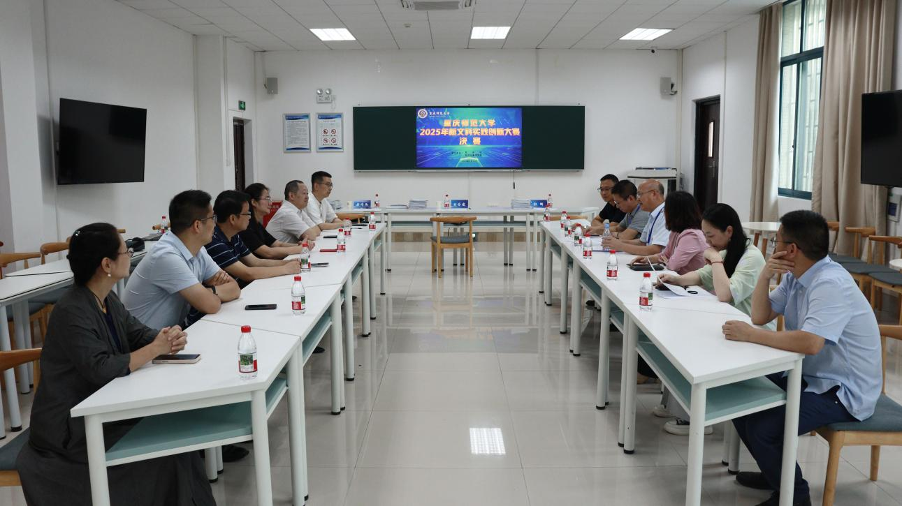 赛前,杨如安对评审专家们的指导表示热烈欢迎和衷心感谢,并与大家进行深入交流。他表示,新文科大赛是深化高校实践创新改革、推动文科创新发展的有力举措,希望以此次大赛为契机,进一步推动文科教育与时代需求深度融合,实现高质量发展。教务处主要负责人介绍了大赛的基本情况和评审规则。