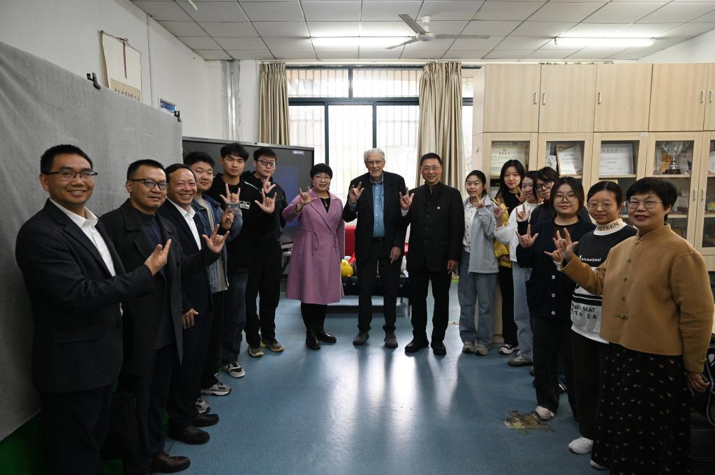 约翰•霍普克罗夫特教授重点考察了中心的早期干预、职业重建等实践平台,以及言语听觉、沙盘情绪调节、手语与听障教育等多个科研实验室。他对中心将教育实践与多模态数据采集相结合,手语翻译团队与业界领先企业(如华为)合作开展SignPal手语大模型等创新研究给予了高度评价。