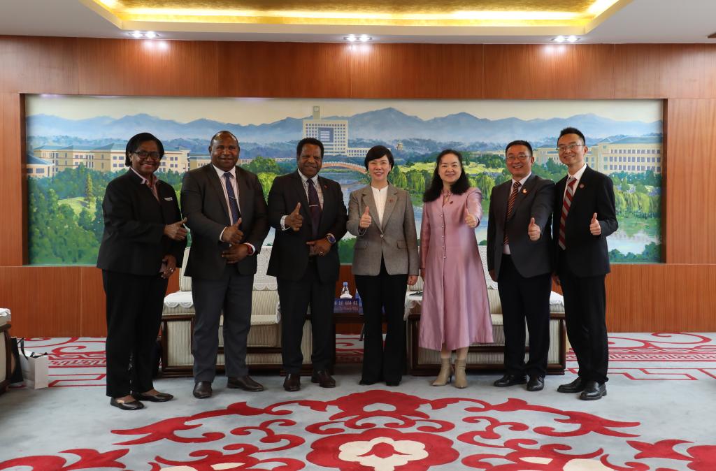 11月17日,学校党委书记张艳会见了巴布亚新几内亚教育部秘书长尤克·克姆布拉一行,巴布亚新几内亚科技大学代理校长考尔·吉纳、副校长维罗妮卡·托马斯随行访问。党委常委、副校长黄永宜参加会见。