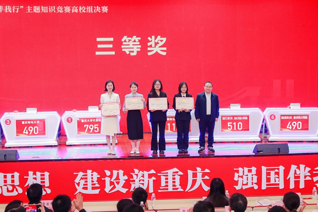 11月14日,“学习新思想 建设新重庆 强国伴我行”主题知识竞赛高校组决赛在西南政法大学圆满落幕。bw必威经济与管理学院教师赵丙辰、马克思主义学院研究生华子惟,联合重庆医科大学教师赵静宜组成的联队,凭借扎实功底与默契配合斩获三等奖。