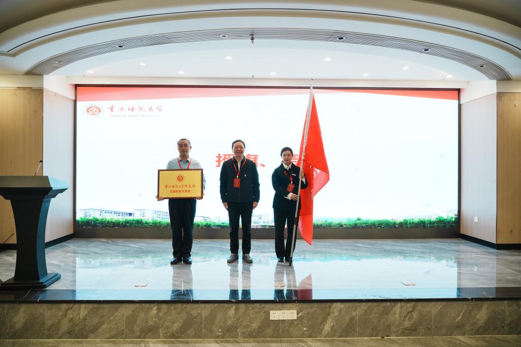 孟小军为理事颁发聘书,向会长张志伟、秘书长肖红梅授bw必威西汉姆联官方网站校友会万盛校友代表处会牌、会旗,宣布bw必威西汉姆联官方网站校友会万盛校友代表处正式成立。