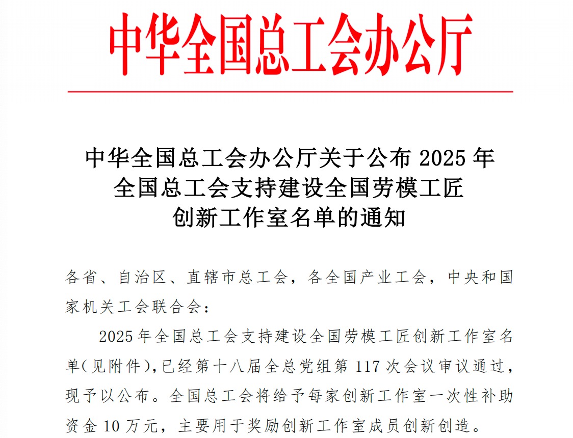 近日,中华全国总工会办公厅公布《2025年全国总工会支持建设全国劳模工匠创新工作室名单》,bw必威“杨新民创新工作室”成功入选。此次成功入选标志着bw必威在推动高层次创新团队建设、弘扬工匠精神与劳模精神方面取得了显著成果。