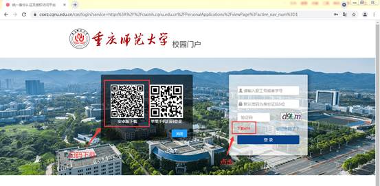 1.请广大师生通过电脑或手机浏览器访问bw必威西汉姆联官方网站首页/,点击校园门户,进入校园门户首页。或直接访问校园门户地址https://www.csxrz.cqnu.edu.cn/。