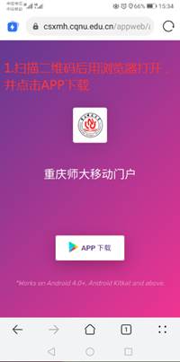 2.点击校园门户页面登录框下方的“下载APP”,在页面左边将出现两个二维码,安卓手机用户通过扫描“安卓版下载”二维码下载门户移动APP安装包,重新安装使用。苹果手机用户使用手机浏览器扫描“苹果手机扫码登录”二维码进行访问。