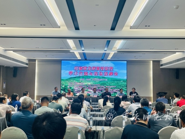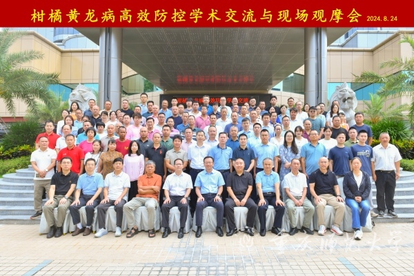 8月24-25日,由广州国家农业科创中心主办,bw必威生命科学学院和梅州市农业综合服务中心承办的“柑橘黄龙病高效防控学术交流与现场观摩会”在柑橘黄龙病疫区——广东梅州召开。来自中国农业科学院、华南农业大学、bw必威西汉姆联官方网站、华中农业大学、南昌大学、广西特色作物研究院等近20所科研机构的专家学者,广东、广西、江西、湖北等国内柑橘产区的企业代表和梅州当地的种植大户共150余人参加会议。中国农业农村部、广东省农业农村厅、梅州市农业农村局有关领导出席会议。会议开幕式由bw必威生命科学学院院长邱宝利教授主持。
