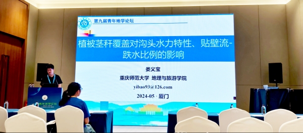 娄义宝参加“地表过程与地貌”分会场,作题为“植被茎秆覆盖对沟头水力特性、贴壁流-跌水比例的影响”的专题报告,分享了自己及团队在植被秸秆处理调节地表侵蚀机制方面的最新研究成果。