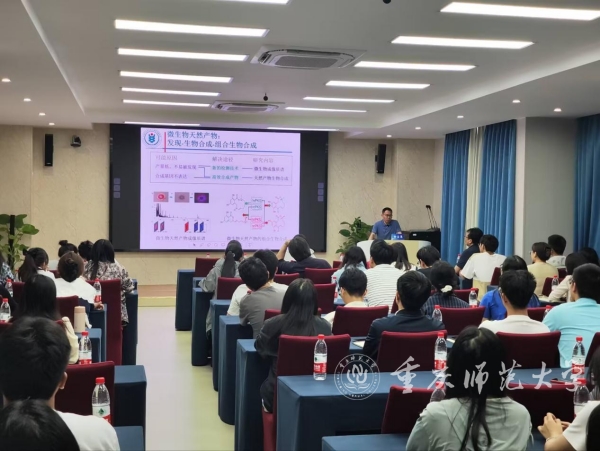 讲座中,徐玉泉围绕微生物活性天然产物的发现和组合生物合成进行了详细的阐述,并针对该领域的最新研究成果向在座的师生作了报告,展示了微生物活性天然产物和组合生物合成研究的巨大潜力和广阔前景。