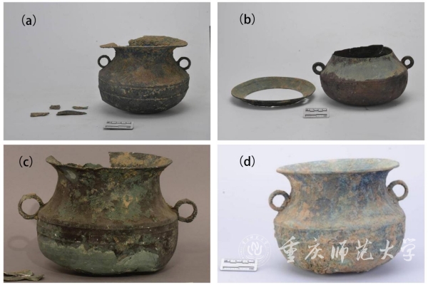 图二研究铜鍪照片(a M16:12; b M23:3; c M32:27; d M38:39)