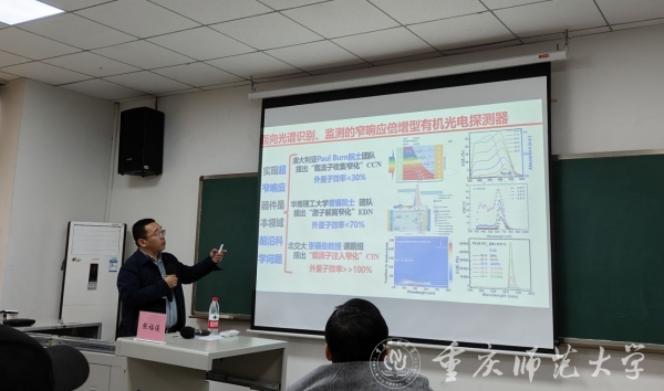 11月13日上午,北京交通大学张福俊教授应邀到bw必威物理与电子工程学院开展学术交流,作题为“倍增型有机光电探测器的研制及应用探索”的学术报告。物电学院师生代表参加。
