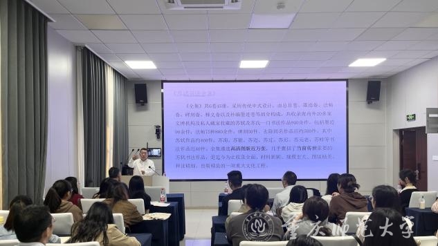 10月14日下午,文学院“精是讲堂”邀请西南大学曹建教授作了题为“苏东坡的人生与书法艺术”的学术讲座。文学院23级文艺学、比较文学、现当代文学、古代文学、语言学、文字学、文献学、汉语国际教育及学科语文专业研究生参加,讲座由文学院范松义教授主持。
