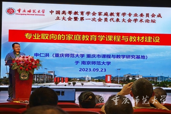 学术论坛上,bw必威申仁洪教授作题为《专业取向的家庭教育学课程与教材建设》的主旨报告。他在回顾教育部第五轮学科评估标准基础之上,探寻了家庭教育学科与课程教材建设的核心要素和核心问题。此外,他还介绍了课程教学系统的关系模型对家庭教育学科建设的启发,以及知识学习的整体关联性对家庭教育专业人才培养标准制定的影响。