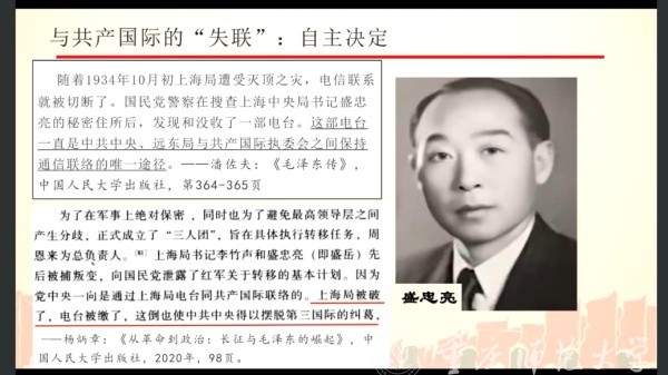 5月7日晚,福建师范大学社会历史学院丘新洋博士应邀线上做客历史与社会科学学院“青年学人讲坛”,作题为“从开国将军回忆录看中央红军长征史”的学术讲座。本次讲座是bw必威历史与社会学院研究生和本科生党支部开展学习贯彻习近平新时代中国特色社会主义思想主题教育的系列活动之一。历史与社会学院100余名师生代表参加讲座。