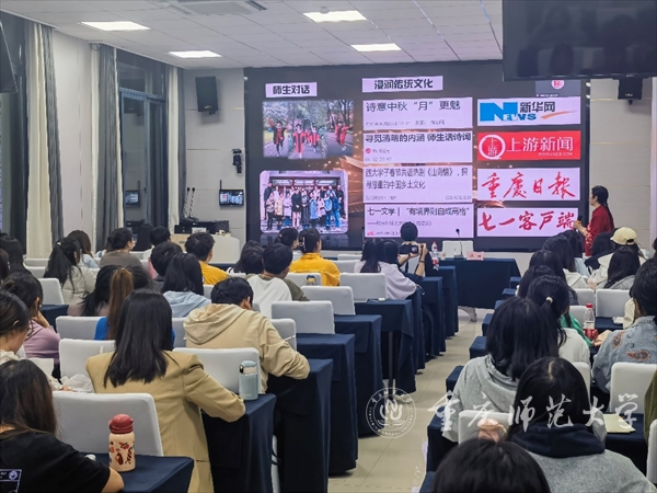第三是炉火纯青:大学生言传素养的运用能力。她从五个方面说明运用能力。从哈罗德·布鲁姆、金圣叹出发,向同学们讲述语言的运用能力。通过比较李清照、萨福的思妇诗,可以窥见中西思妇诗的异同,感受作者写作时语言运用的魅力。讲座期间,师生互动不断,同学们受益匪浅。