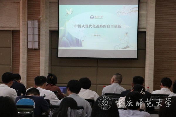 骆郁廷围绕“国家独立和自主探索相结合的现代化道路创新”“普遍真理与具体实践相结合的现代化道路创新”“社会主义和市场经济相结合的现代化道路创新”“创新为主与借鉴为辅相结合的现代化道路创新”四部分展开讲座。他强调深入分析、揭示和把握中国式现代化的本质特征对于全面深刻理解和坚定不移走中国式现代化道路,以推进社会主义现代化强国建设,实现中华民族伟大复兴具有重大意义;同学们要在中国式现代化道路上继续坚持自主创新,以助力我国现代化建设取得更大成就。