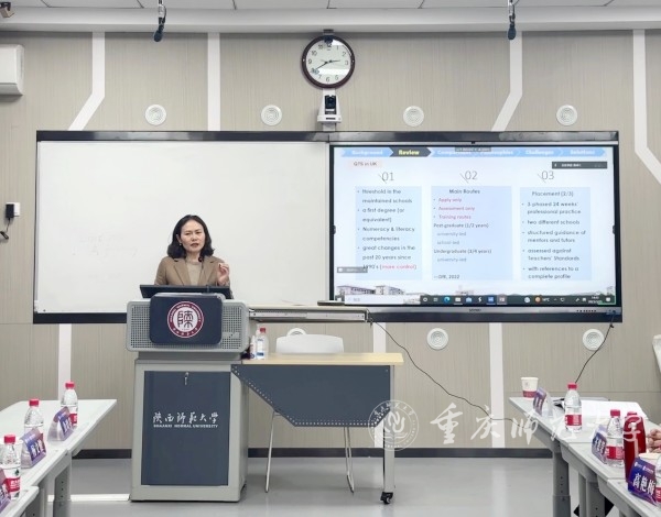 当日下午,西部师范大学“文明交流互鉴视角下外语学科责任与使命”圆桌论坛举行。我院陈君教授以“英语师范生教学能力培养的中英比较及启示”为题作会议发言。基于对相关文本的解读与英国访学期间的实地教学观察,陈君教授着重分享了英国英语师范生教学能力培养的三阶段实践教学体系及其对我国英语师范生教学实践能力培养的启示,并与参会老师就师范生培养,特别是师范生培养理论与实践教学体系的有机融合展开了热烈讨论。