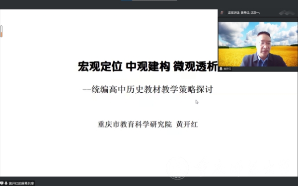 最后,黄老师对进行统编高中历史教学时需注意的问题进行说明,鼓励同学们在今后教学中做到教学阶段及教材内容衔接,依据课标把握教学方向,明确教学重难点,加强高中学生研究思维培养,落实核心素养。