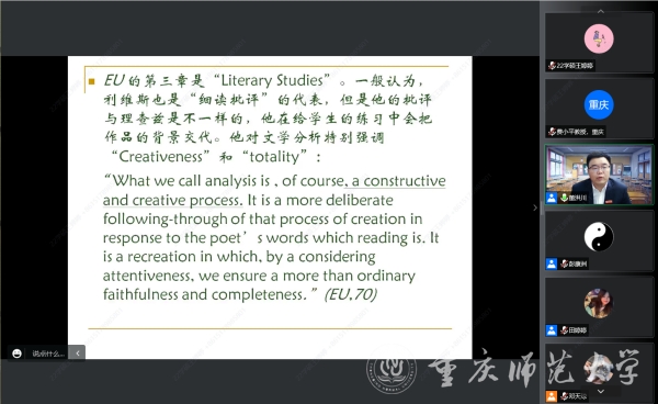 自由交流环节,与会老师同学积极发言,气氛活跃,营造了良好的学术氛围。外国语学院费小平教授和陈君教授依次分享了自己的心得体会,同学们受益匪浅。