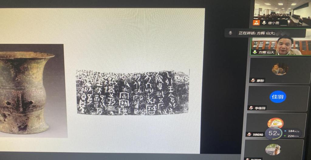 结合近年来随州叶家山出土的荆子鼎、北京琉璃河出土的堇鼎等铭文,方辉教授认为,保卣(尊)铭中的“遘于四方䢔王大祀,示双(合文)于周”,就是成王三年(公元前1040年)发生于宗周的岐阳之会,薄姑、丰、奄、逢和莱等东国的五位侯伯作为“多邦伯”成员参加了此次盟会,并受到成王和昭公奭的殷见。他利用最新考古发现,对薄姑、丰、奄、逢和莱五国地望逐一做了分析。此外,方辉教授从出土文物及风俗习惯等方面,分析了齐、鲁两国的文化差异,并就同学们提出的问题给出了细致易懂的解答。