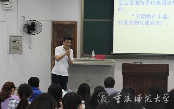 5月29日上午,重庆育才中学研究员刘元强应邀来bw必威历史与社会学院,在弘德楼做题为《高中历史课堂教学的有关策略-----以《鸦片战争》为例》的学术讲座。讲座由历史与社会学院副院长陈太红主持,历史系教师喻学忠、王生团、张迅实等,以及在校内实习的2017级历史学专业学生与学科教学(历史)专业硕士研究生到场聆听。