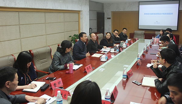 冯刚教授以“思想政治教育政策设计和发展趋势”为题,在综合行政楼309会议室面向市校两级“高校辅导员名师工作室”全体成员作报告。他首先梳理回顾了改革开放以来思想政治教育政策发展的历史,详细解读了“政策与学理建构、实践问题、解决对象、阶段性特征”之间的相互关系,勾画了思想政治教育政策的未来发展趋势:立足本来,以学生成长成才为中心;吸收外来,要有交叉学科视野;面向未来,注重协同育人、合力育人,关注现实问题。随后,以对话的方式为参会人员解读课题申报、论文写作等问题,并建议全体辅导员一要结合专业特长选准研究方向,二要找准生长点参透教育规律,三要多读书提升理论素养,四要加强成果提炼与转化。