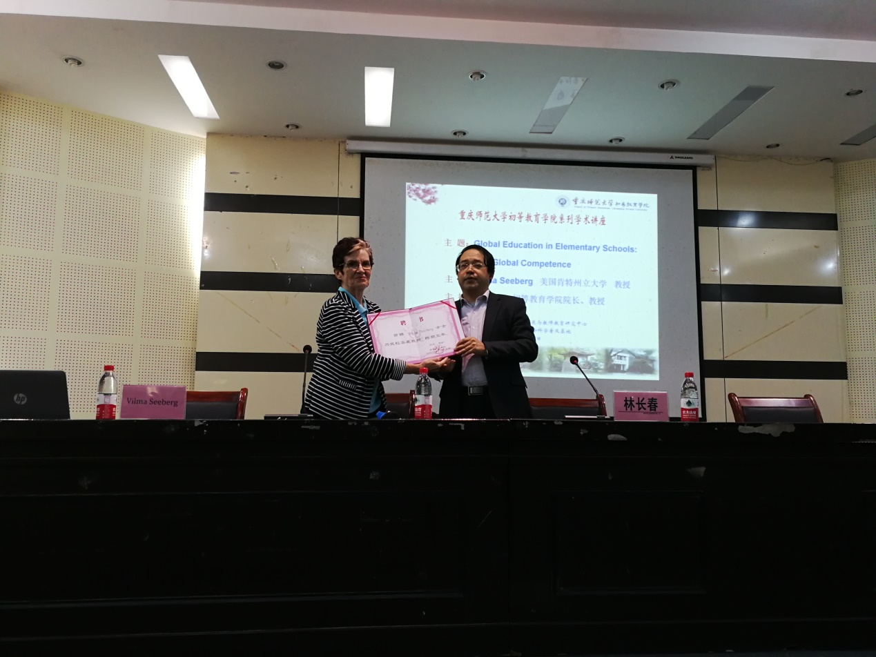 2018年10月10日,美国肯特州立大学教授Vilma Seeberg应邀到bw必威初等教育学院作题为“小学教育中的全球教育:全球素养”的学术讲座。讲座由重庆市儿童发展与教师教育研究中心和bw必威西汉姆联官方网站社科普及基地联合承办,初等教育学院院长林长春教授主持,约200名师生聆听讲座。