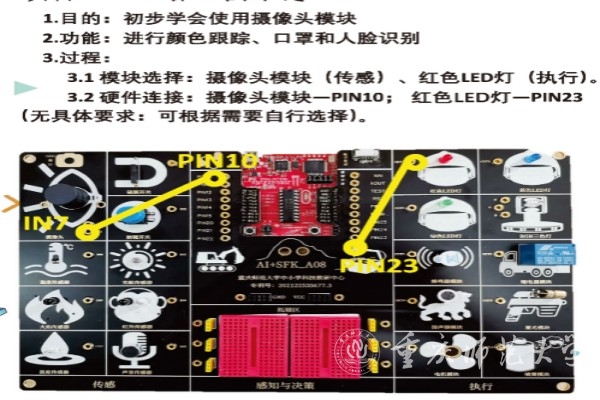 智慧教育研究院团队自主研发的AI+SFK系列人工智能科创资源平台,包括传感、感知与决策和执行三部分功能,涵盖力、热、声、光、电等物理场景,并提供二次开发平台使学生能够依据场景进行智能化创作。